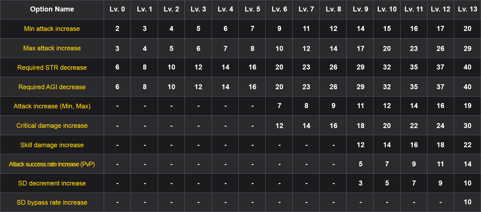 Harmony Options Available for Weapons (Except Staffs):