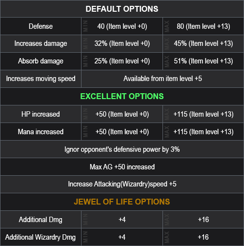 | Wings of Dragon for BK | Wings of Soul for SM | Wings of Spirits for ME | Wings of Darkness for MG | Cape of Lord for DL |