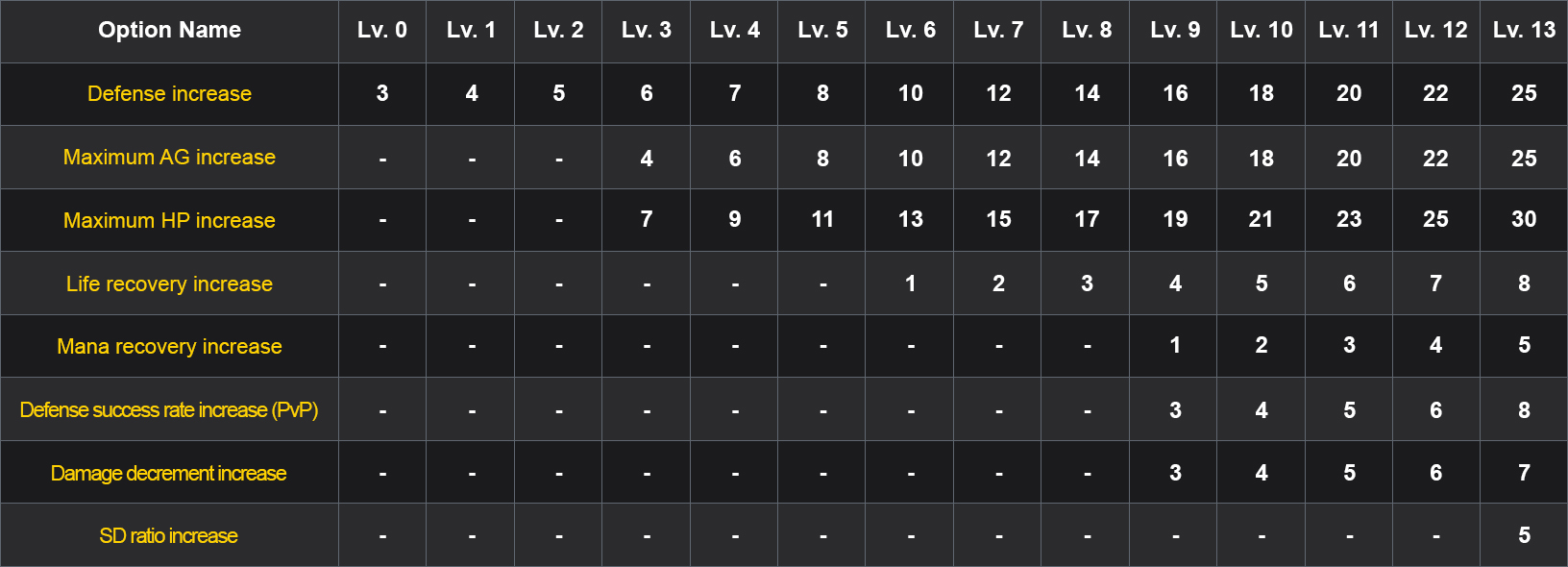 Các tùy chọn Harmony có sẵn cho Bộ trang bị phòng thủ (Bộ):
