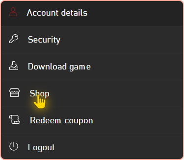 After logging in, on the right side of the page, the details of your account will be available to you. In this section, you will go to the SHOP category. See the example below indicating where you should click: